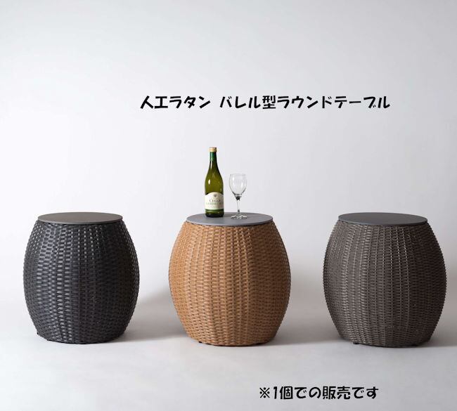 人工ラタン バレルラウンドテーブル サイドテーブル 北欧モダン(953)